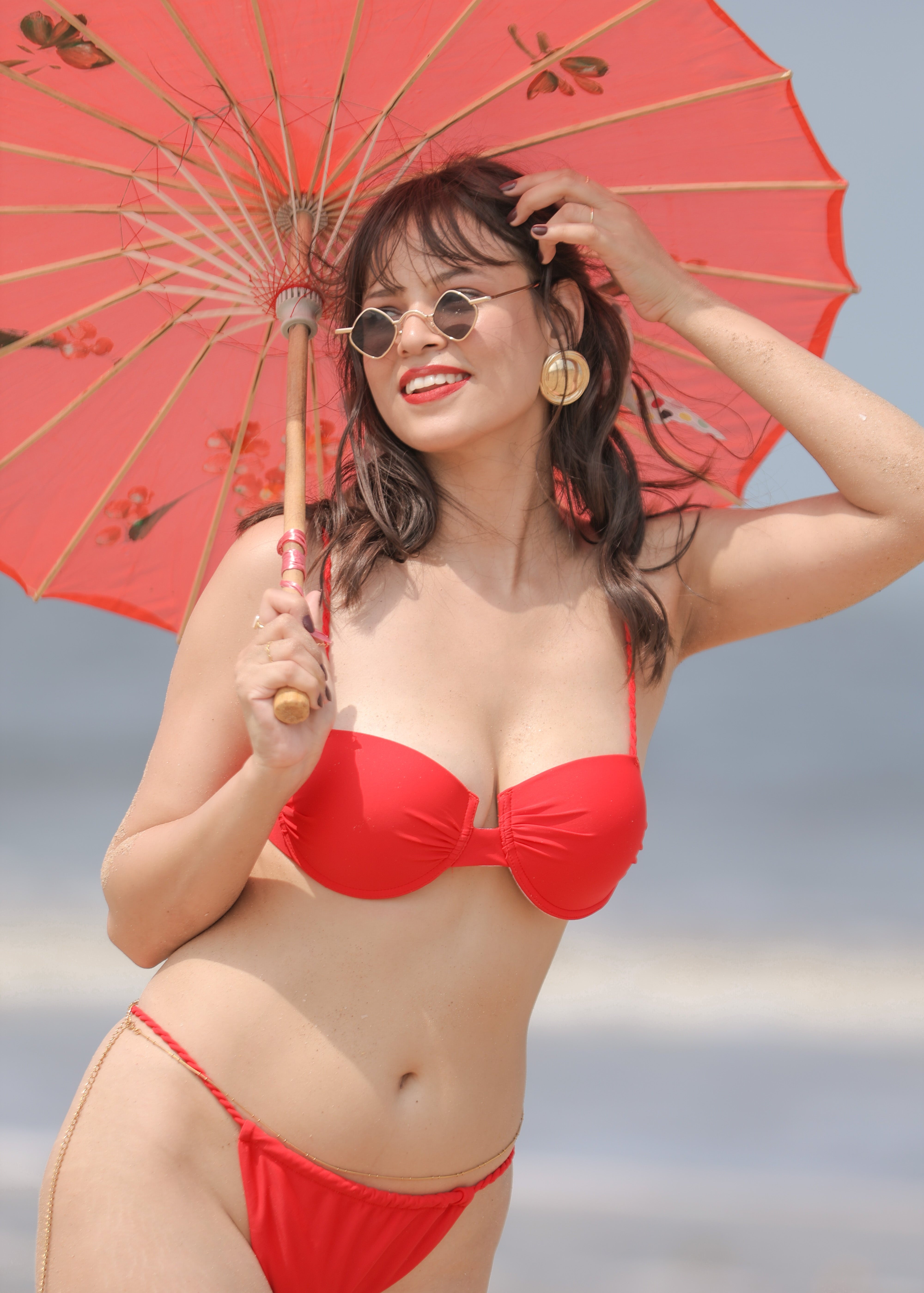 Red braided bikini with supportive wiring — bold, lifted, and made for movement